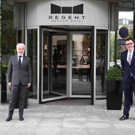 The cooperation between Polski Holding Nieruchomości and Polski Holding Hotelowy has resulted in signing a lease agreement for the Regent Warsaw Hotel with the right of first refusal. The proposal submitted by both companies has been selected in the tender process by the official receiver of Cosmar Polska. Both companies are planning to take immediate measures aimed at purchasing this facility, one of the most attractively located hotels in Warsaw, and transform it into one of the most stylish places in the city.