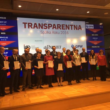 The ranking covered 140 companies listed in the WIG20, WIG40 and WIG80 indices. In the WIG80 index, the winners included Polski Holding Nieruchomości S.A. The results of the ranking “Transparent Company of the Year 2016” were officially announced on April 6, 2017 on Warsaw Stock Exchange. During the ceremony, the most transparent companies of the year 2016 from WIG20, WIG40 and WIG80 indices were selected.