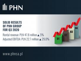 In Q3, the adjusted EBITDA of the PHN Group amounted to PLN 22.7 million, rental revenue amounted to PLN 47.8 million compared to PLN 45.5 million in the same period last year, and rental profit amounted to PLN 25.5 million....