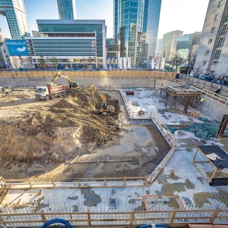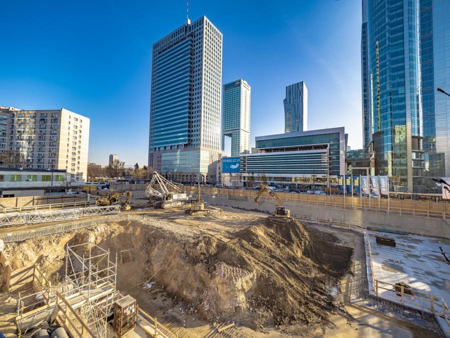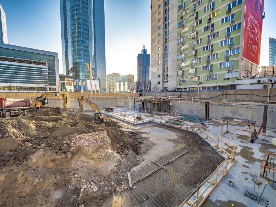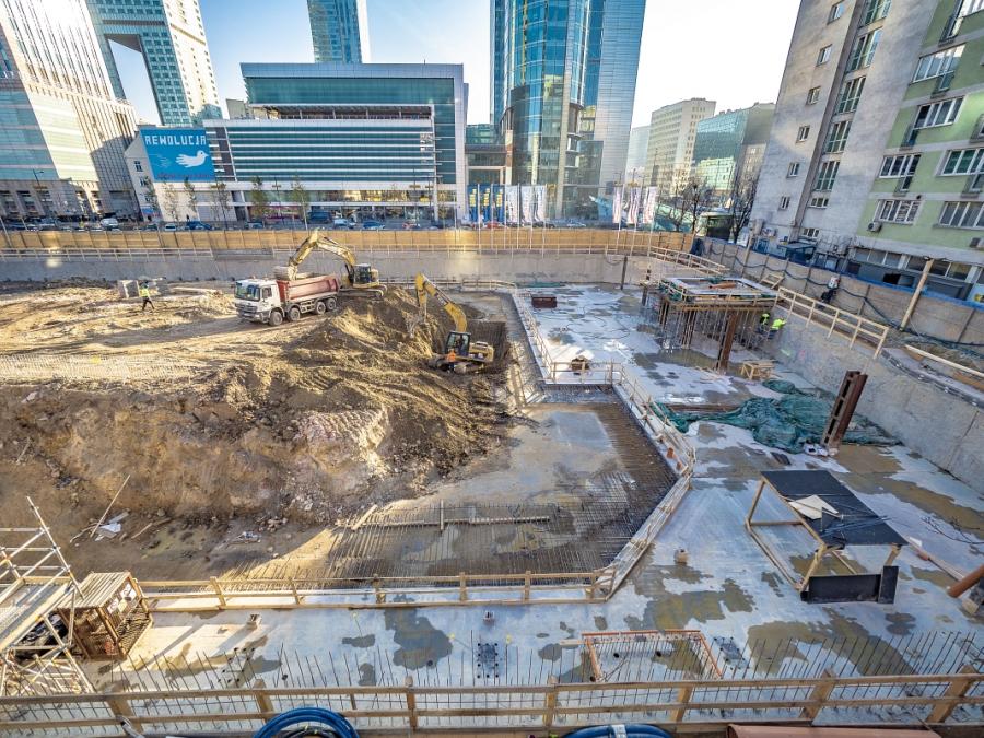 Ukończono drążenie ścian szczelinowych budynku SKYSAWA - flagowej inwestycji Polskiego Holdingu Nieruchomości. Kolejnym etapem jest budowa trzech kondygnacji podziemnych budynku. Prace prowadzone są metodą „podstropową”.